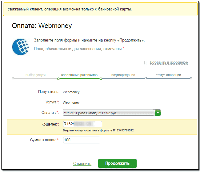 Как происходит пополнение кошелька Вебмани с карточки Сбербанка, правила регистрации в онлайн-сервисе банка. Пошаговые рекомендации для клиента.