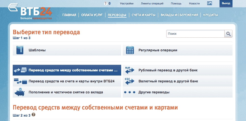 Как совершить перевод с ВТБ на ВТБ иди другой банк
